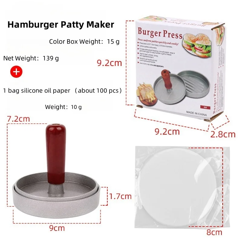 संक्षिप्त और पोर्टेबल, पूर्ण एक्सेसरीज़ के साथ: यह मिनी बर्गर शेपर केवल 9.2 सेमी × 7.2 सेमी का है, जिससे इसे रसोई के दराज़ में आसानी से स्टोर किया जा सकता है या यात्राओं पर ले जाया जा सकता है। सेट में साफ़ और बिना गंदगी के प्रेसिंग के लिए लगभग 100 पन्नों का पर्चमेंट पेपर शामिल है। शुद्ध वजन केवल 139 ग्राम है।