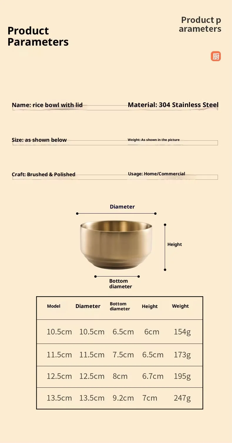 Жоғары сапалы 304 нержіс темірден жасалған ойыс екі қабырғалы технология арқасында бұл кесе пішінін сақтайды және ұстауға ыңғайлы болып қала береді. Ысырылған беті мен күшейтілген құрылымы жиі пайдаланылатын орындарда тозуға және таттануға төзімді, коммерциялық деңгейдегі беріктікті қамтамасыз етеді және тазалауға ыңғайлы болып қалады.