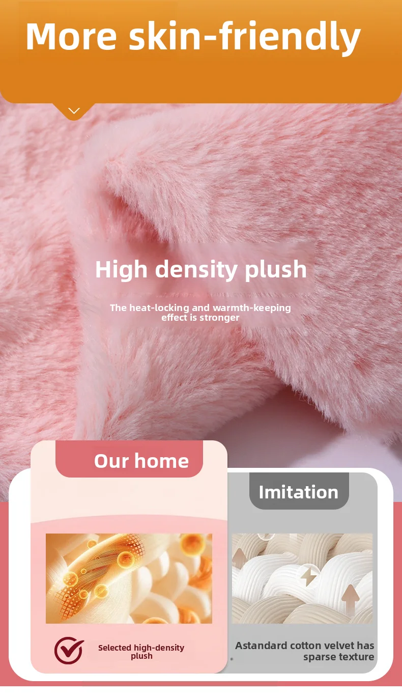 Тығыз ұзын талшықты велюр мата арқылы жасалған бұл жылу сөмкесі жоғары деңгейде жылуды сақтайды және теріге жұмсақ әсер етуді сақтайды. Лукс материал ұзақ уақыт бойы жылуды сақтайды және жұмсақ, ыңғайлы пайдаланушы тәжірибесін ұсынады.