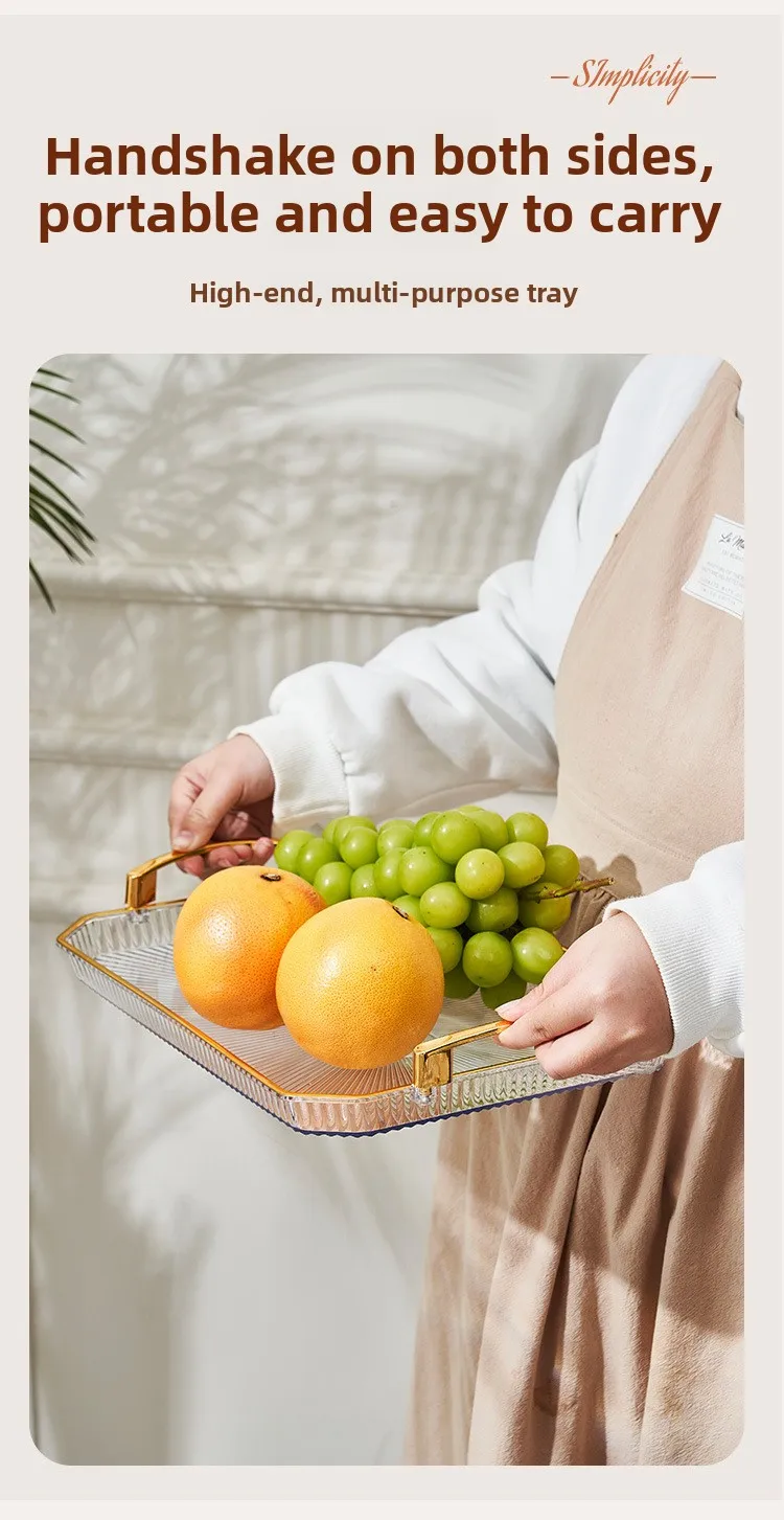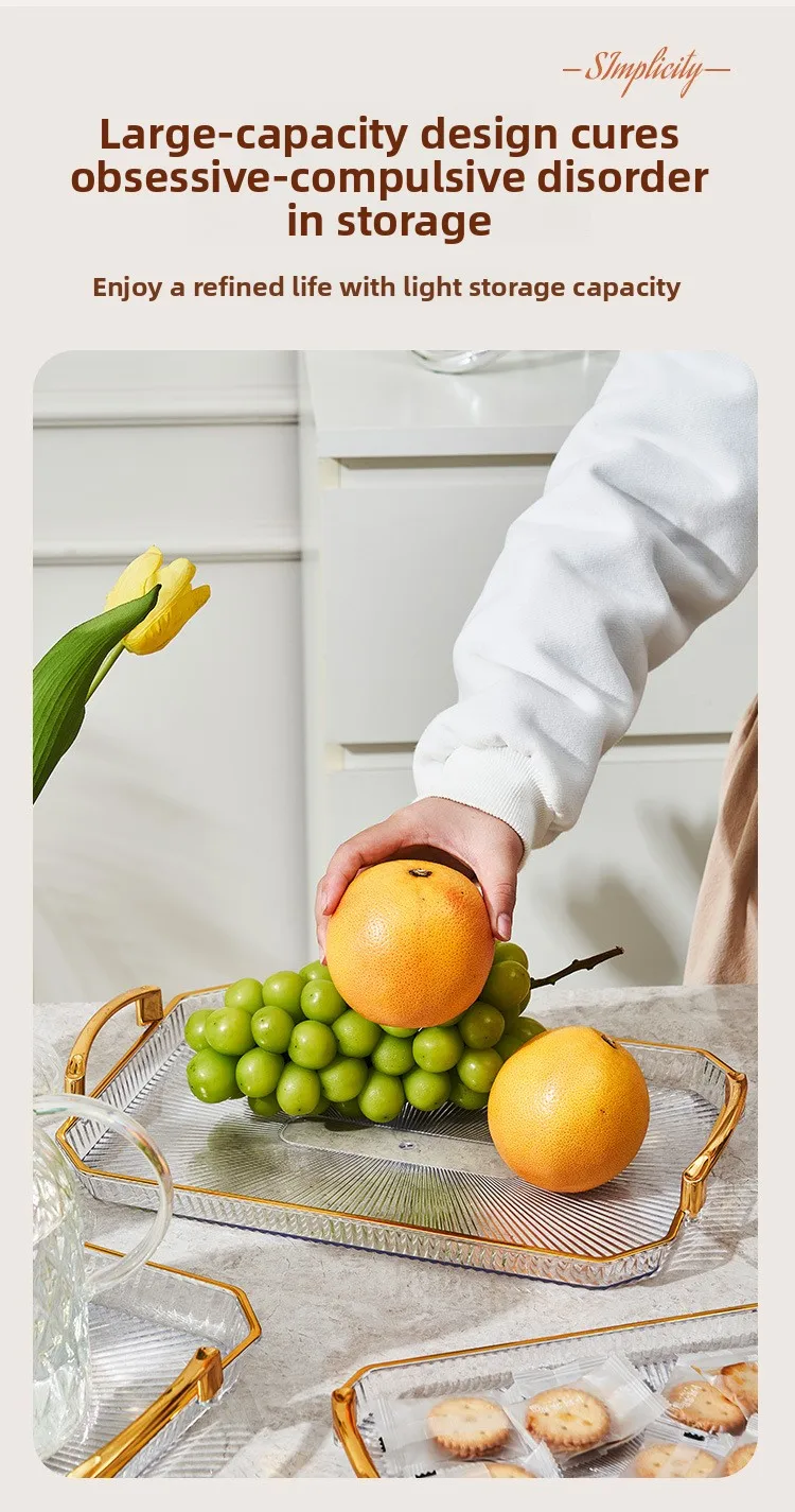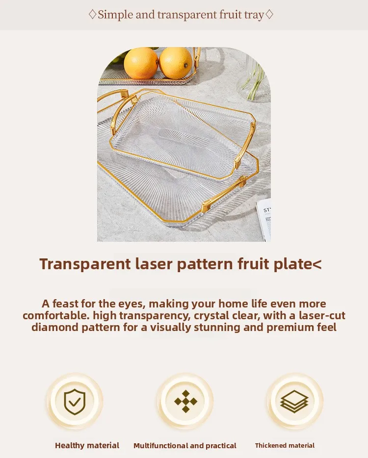 Нақты жасалған алмаз түріндегі беті мен кристалды таза мөлдірлігімен ерекшеленетін бұл сервировка табағы күнделікті және мерекелік үстелдердің сыртқы түрін жақсартады. Опциялық алтын түсті қолдары таңдамалы ыңғайлылық қосып, жемістер, десерттер немесе декоративтік орындар үшін әдемі фон жасайды.