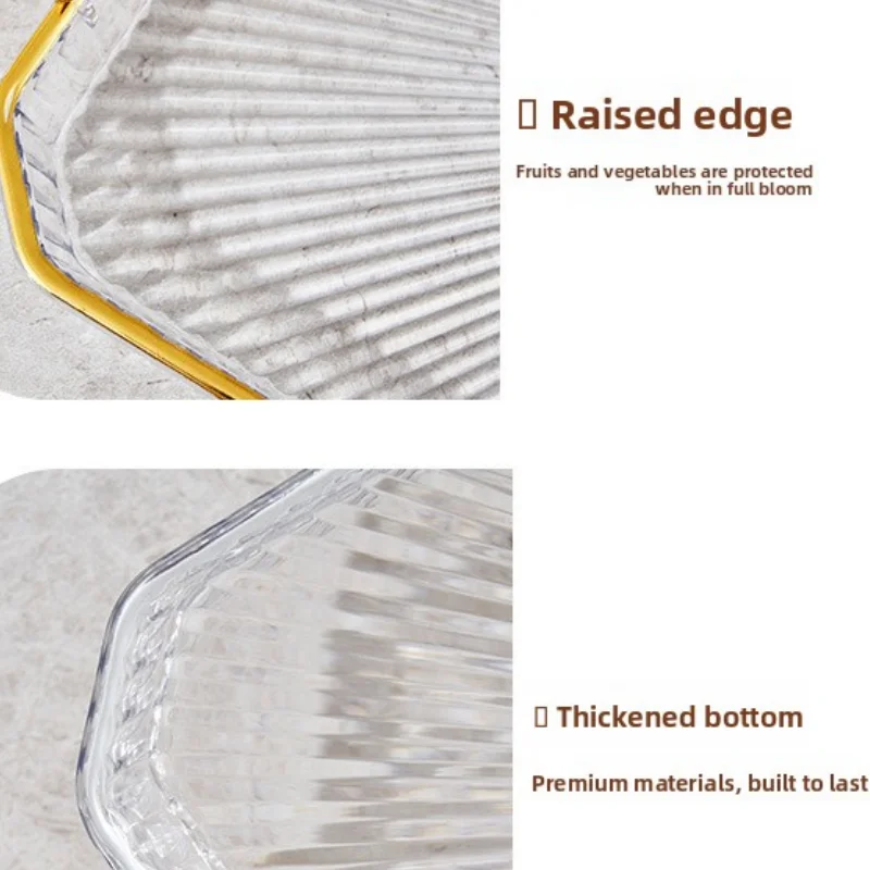 Cum superficie ex diamante figurata diligenter elaborata et transparentia crystallina, haec lanx cibaria ministranda elevat in usum cotidianum et festivum. Manubria aurea facultativa accentum elegantem afferunt, substructionemque efficiunt doctam pro fructibus, dessertis vel ostentationibus decorativis.