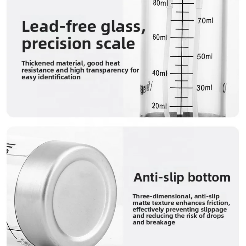 Crafted from premium lead-free glass with clear measurement markings, this bottle enables easy content identification and quantity monitoring. The heat-resistant material combined with a non-slip base ensures safe and stable use during food preparation.