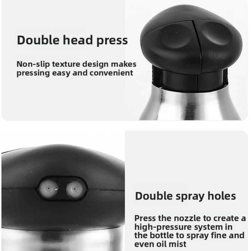 Equipped with precision stainless steel nozzles, this kitchen mister produces a consistent fine mist for even coverage. The restaurant-quality spray technology ensures optimal oil distribution while reducing consumption compared to traditional pouring methods.