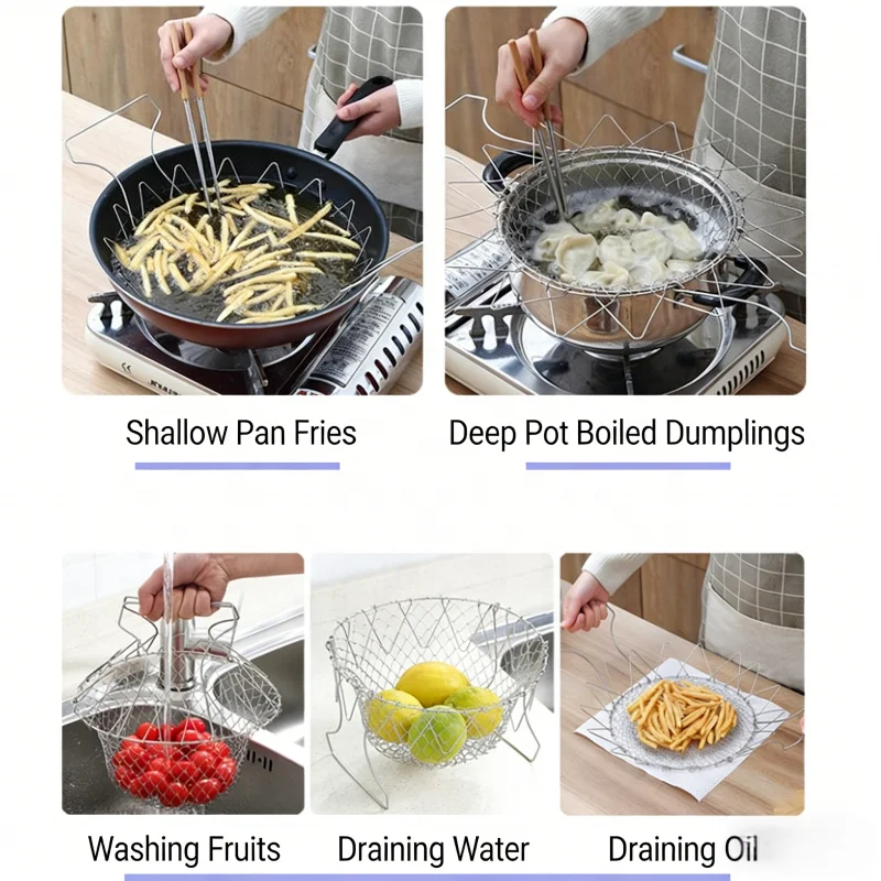 ✓ Foldable & Space-Saving: Expands for cooking, collapses for storage